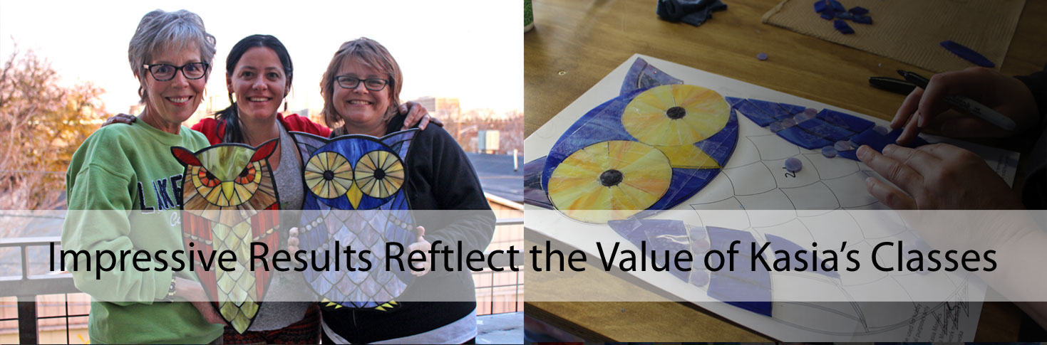 I was one of the lucky ones to attend Kasia’s and Kyle’s Mosaic Class in Boise Idaho last fall (2015). I am just a dabbler (but I thought I knew quite a bit on how to make mosaics) and I cannot tell you how much I learned in the two day workshop. I made an owl and I simply loved the way he turned out. I am using the techniques I have learned on my current mosaics and I am enjoying the process so much more. Kudos to both Kasia and Kyle for being such awesome instructors and great people!!